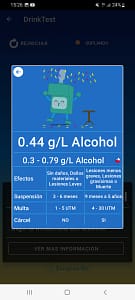 La aplicación presenta, en una sola vista, los principales aspectos de la Ley de Tránsito relacionados con el consumo de alcohol, ajustándose automáticamente según los valores medidos por el hardware.